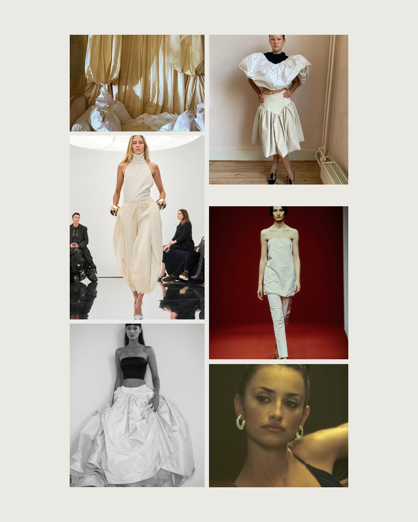 The trend cycle is so wildly reactive right now. Whether or not this is evident in real life is hard to say (like are people buying things and switching up their looks as quickly as TikTok suggests?), but there are a bunch of fashion data accounts now that argue that shopping search volume does correlate to shifts in trend content online (and that side parts are back! but I digress). So here’s my main 2024 prediction. Silhouettes won’t change extensively, but fabrics are going to become richer and more textural—most notably in silk. Whether you’re talking about the recent “trends” of coquette or mob wives, the through line is an emphasis on the feminine. After a long stretch of strong shoulder outerwear and blazers and oversized silhouettes that signify a more masculine energy, the pendulum is swinging to a divine feminine mode—whether that’s in the outsized powerful and bold mob wife, or the soft and girlish coquette with her bows and more playful approach. We are thankfully free of the boss bitch era, god that was exhausting and felt a lot like telling women to act like men in order to achieve “success”. Everything in life is about balance, of course we all have masculine and feminine energy, and at different points in our lives we will exhibit each more strongly. But if the Alaia show with its intricate silk skirts, and restrained girlie newcomers Nicklas Skovgaard out of Copenhagen and Marlies Grace, the beautifully dramatic Maison Margiela by Galliano show, and Schiaparelli’s moment with that hardware baby are any indication, we’re exploring what it means to be feminine now. This is not a gendered thing, it’s an energetic thing. I’m interpreting it as particularly textural and luxurious silks from a purely aesthetic standpoint. It harks back to some 90s moments (what doesn’t!), most notably an epic Christie Turlington look at Isaac Mizrahi in 1993 and Miu Miu Spring ‘99 ad nauseum. There’s also an emphasis on home with silk dupioni curtains popping up in vintage images on my Insta grid—maybe it’s because I like every pic that includes them. It’s just SO pretty.